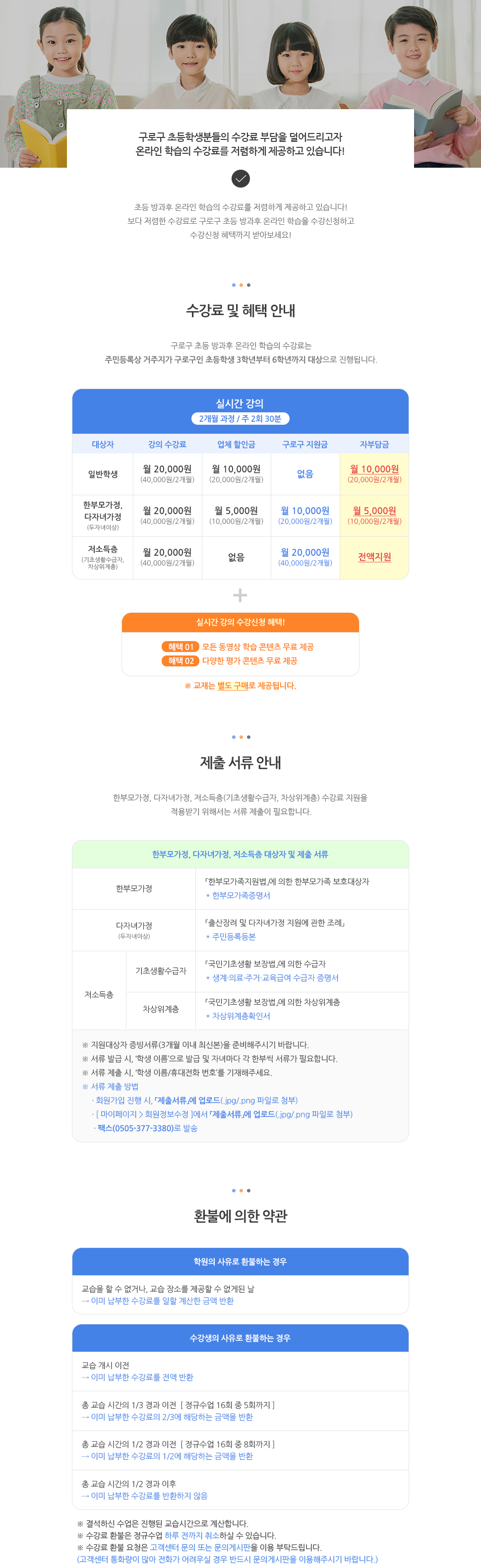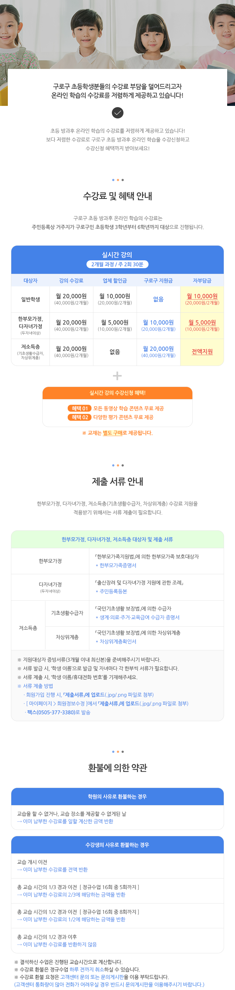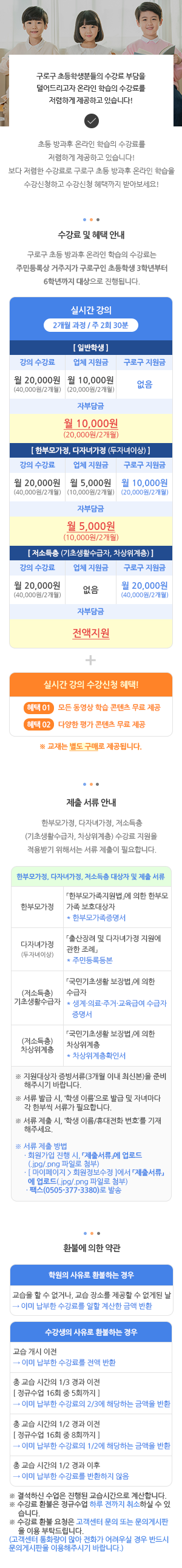 온라인 학습의 수강료에 관하여 안내드립니다.